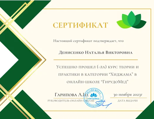 Я решила учиться: закончила МИИН по направлениям интегративной и клинической нутрициологии, отучилась в МГПИ на гирудотерапевта с дальнейшим повышением квалификации у профессора Каменева О.Ю. в Санкт-Петербурге, освоила хиджаму у врача невролога Гариповой А.Ш.. Сегодня, в свои 58 лет, я помогаю людям скорректировать вес, изменить пищевые привычки и образ жизни.